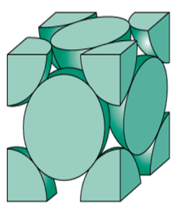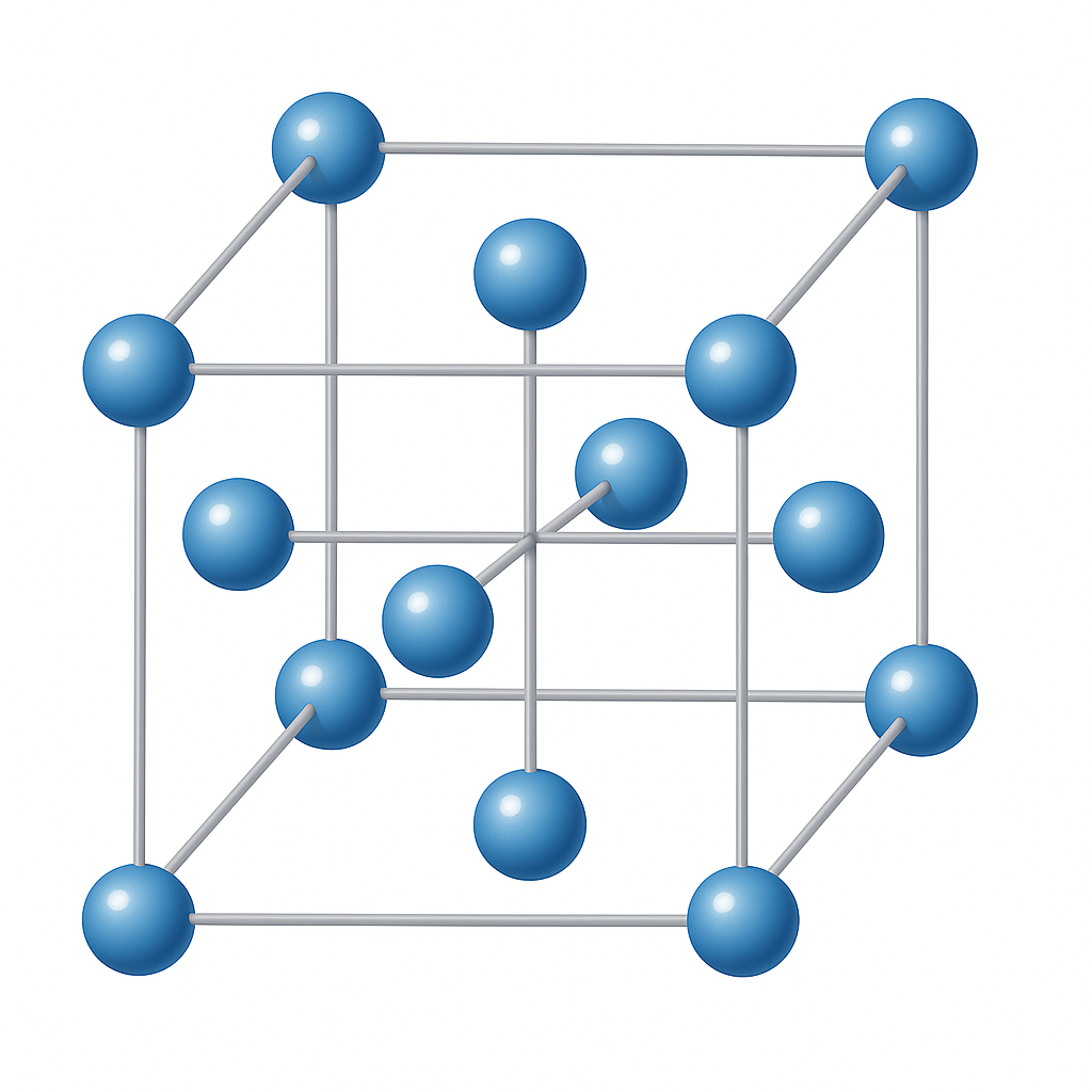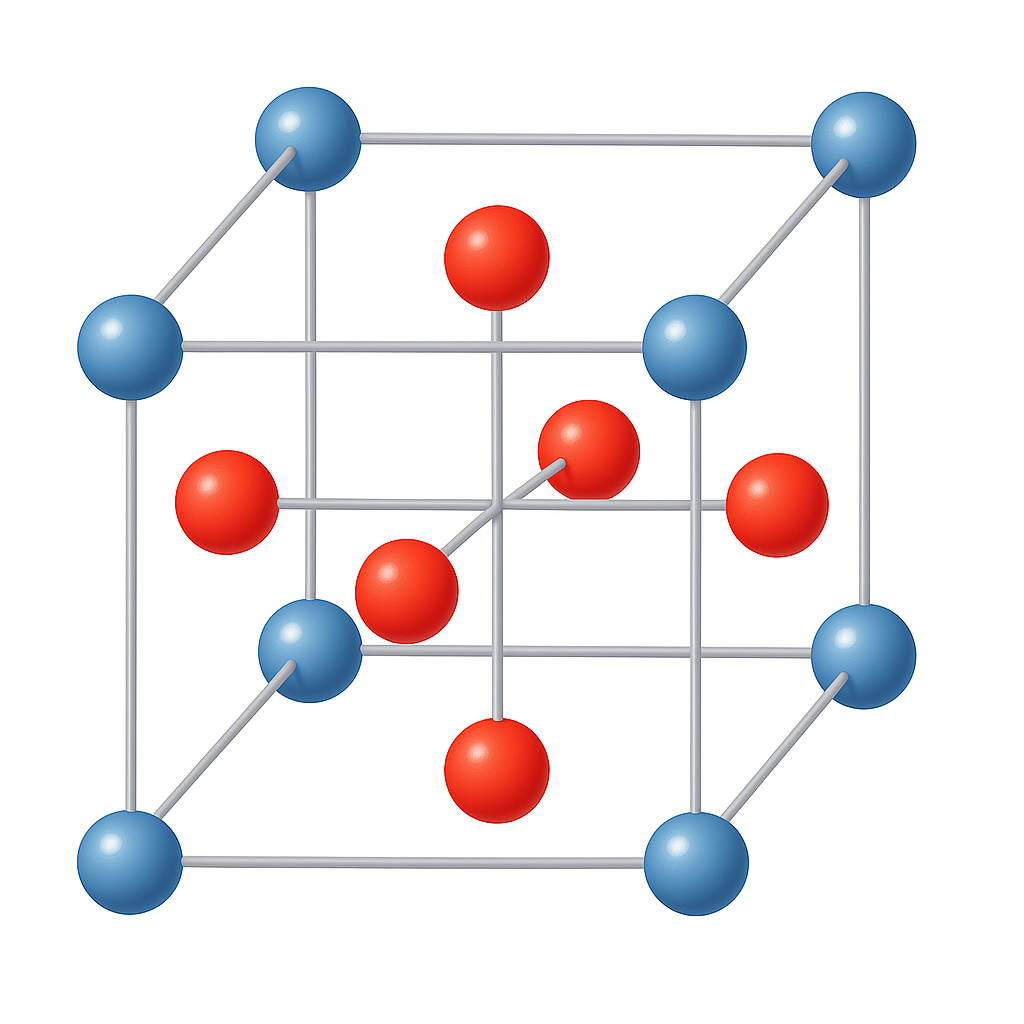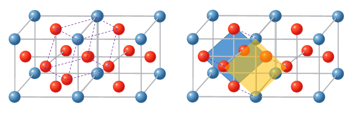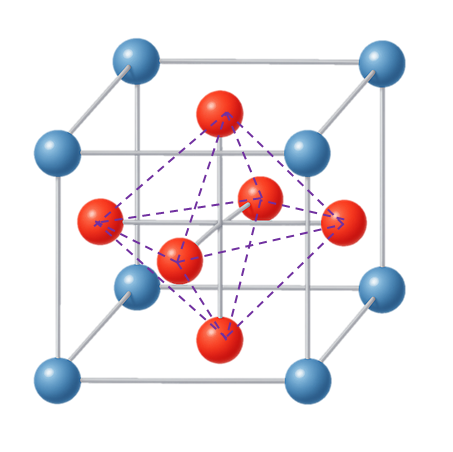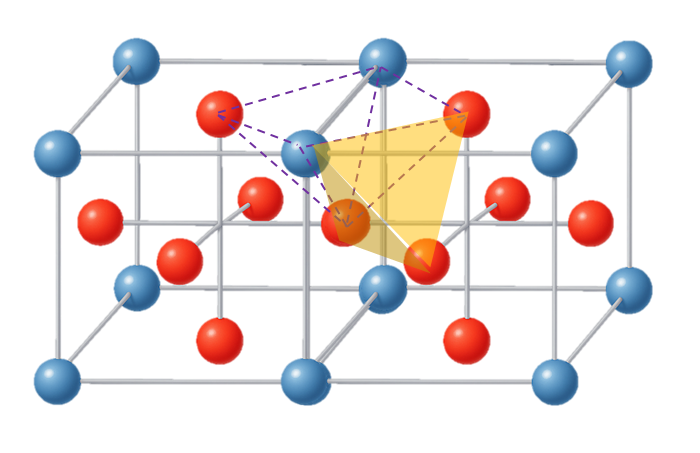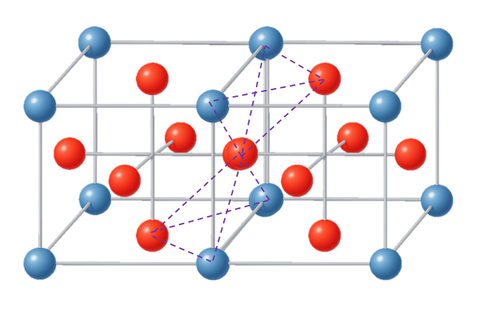 두번째 패턴은 두개의 큐브를 결합하는 경우 그 사이에 사각형을 형성하고 그 사각형에 수직으로 최근접하는 면중심 공과 연결하는 피라미드 패턴이 가능하다. 이 패턴은 면 하나당 4개가 발생하고 총 6면이므로 24개가 생기지만 1/2 지분을 갖기 때문에 총 12개가 발생한다.
